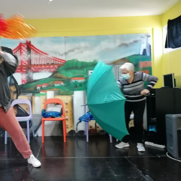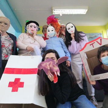 participantes dos Encontros de Máscaras e Sombras (Maria, Ana, Antónia, Francisca, Hermínia, Cecília, Amorosa, Tina, Sebastião), Colectivo Trilhos (Sandra, Sónia, Letícia) e Espaço Jovem PIA II (Cátia, Inês, Diogo, Bruno)